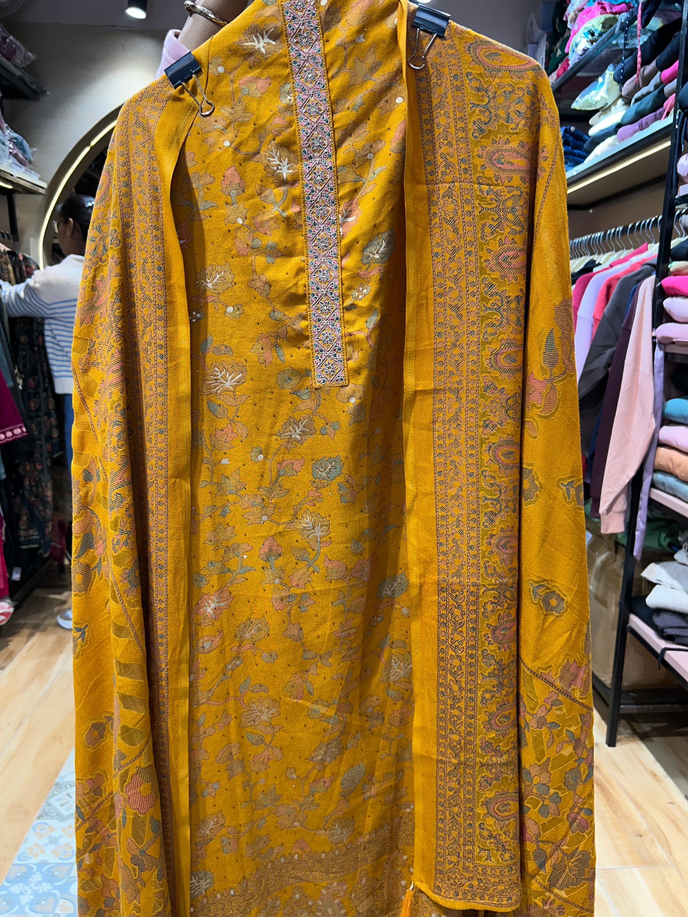 Give your Everyday look a dreamy update with this beautiful woolen fabric. Team these with heels or flats and shoulder bag for a look we're loving. Handwork on kurta and dupatta