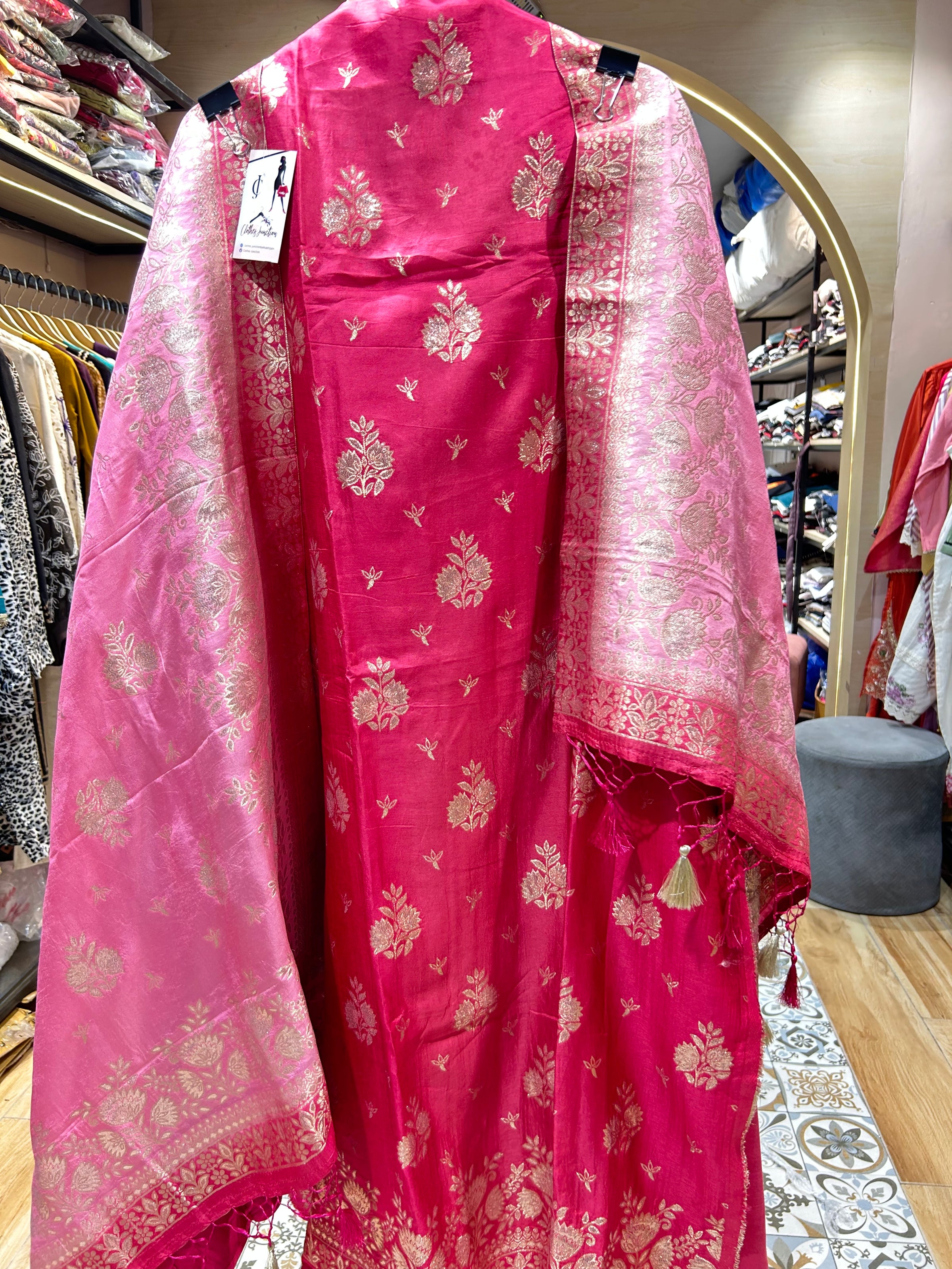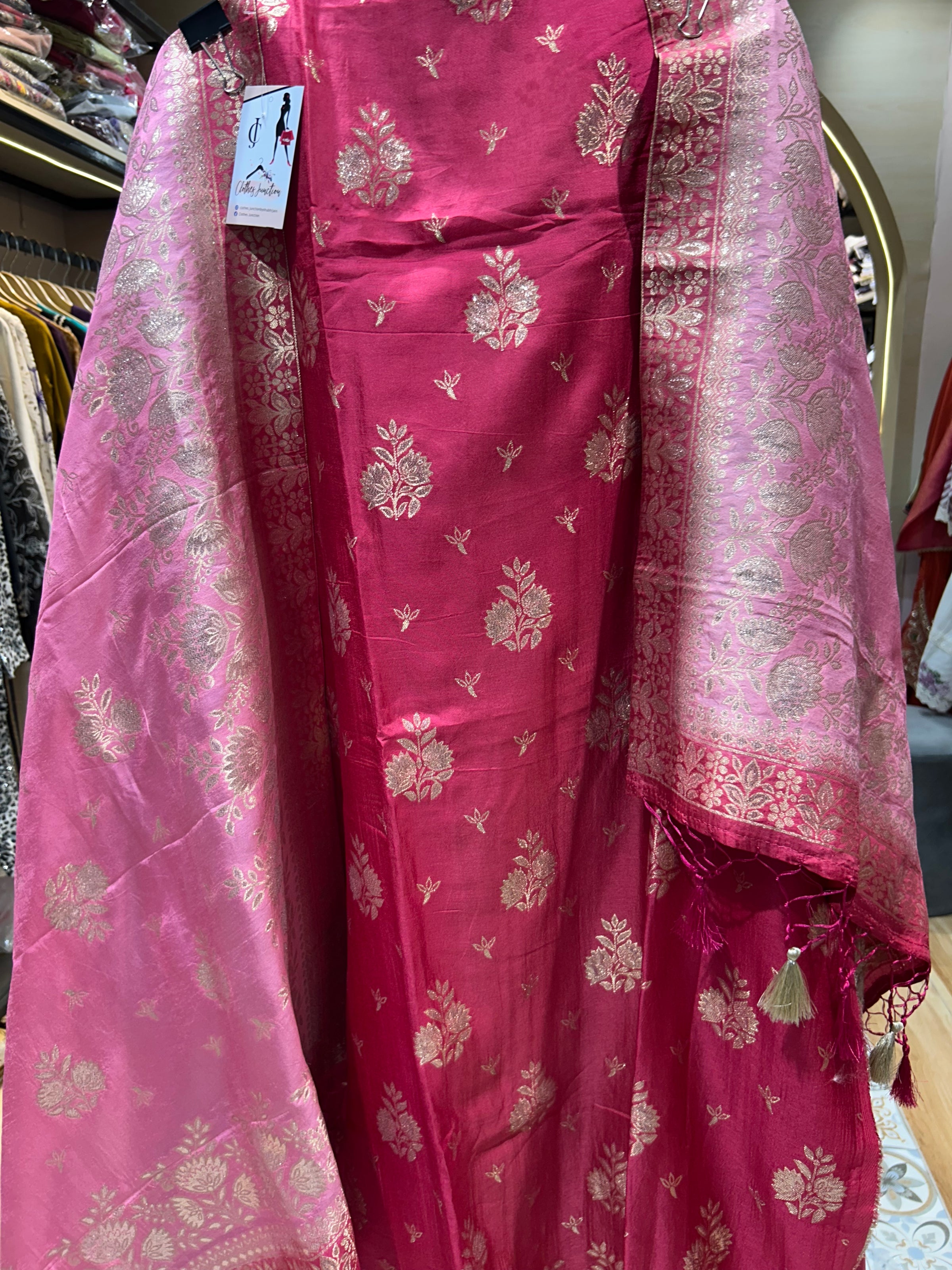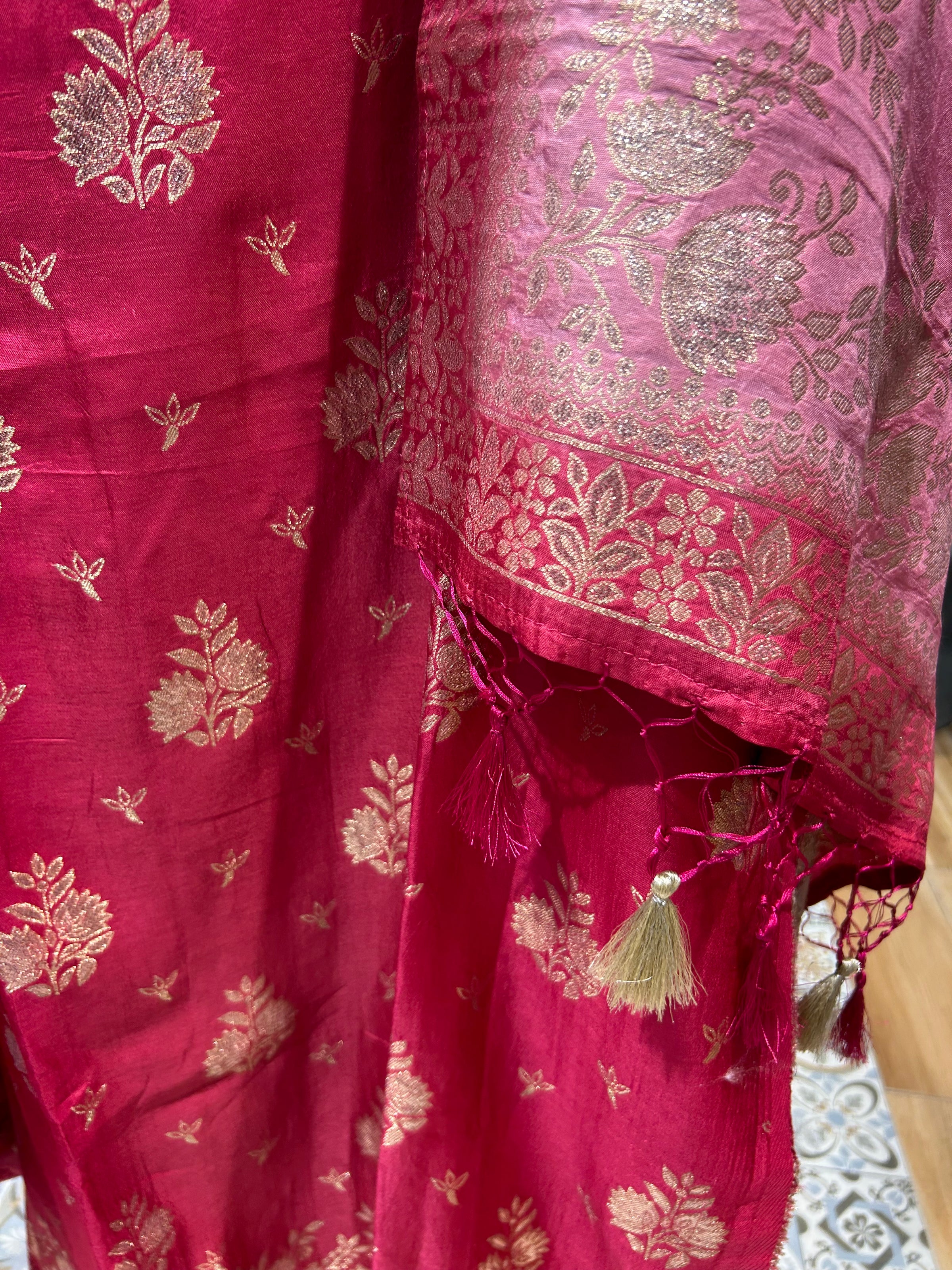 Give your Everyday look a dreamy update with this beautiful fabric. Team these with heels or flats and shoulder bag for a look we're loving. Handwork on kurta and dupatta
