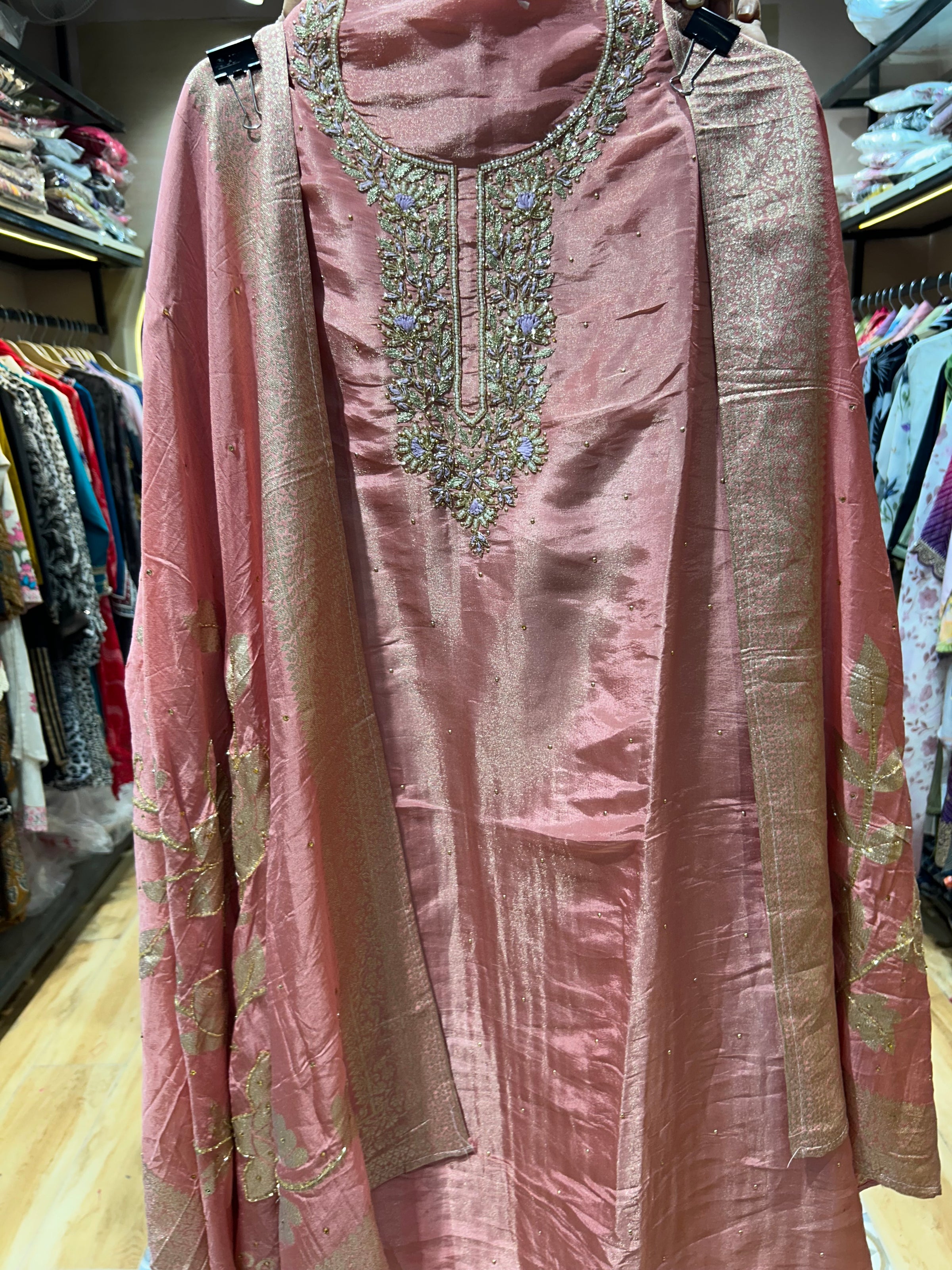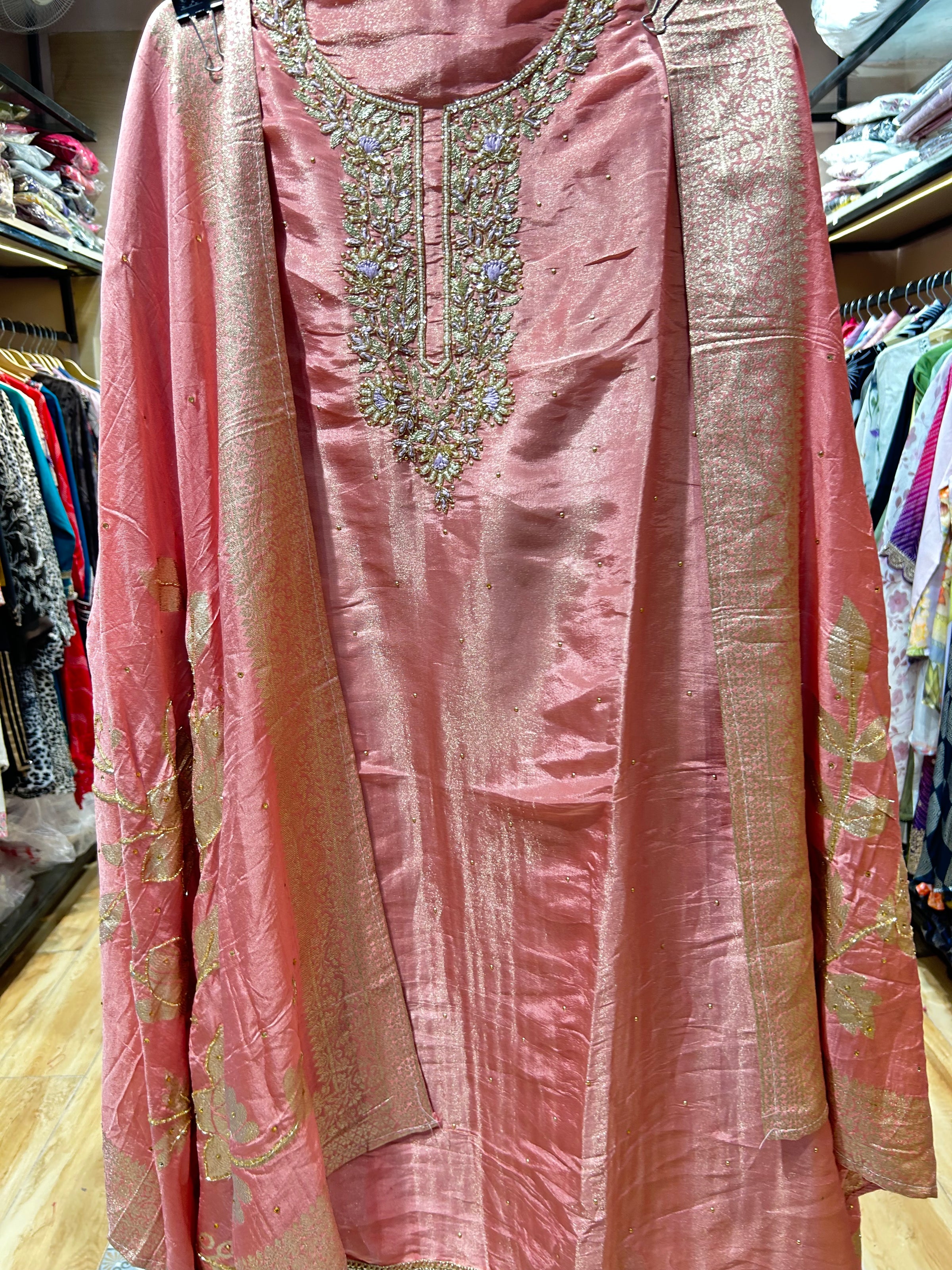 Give your Everyday look a dreamy update with this beautiful fabric. Team these with heels or flats and shoulder bag for a look we're loving. Handwork on kurta and dupatta