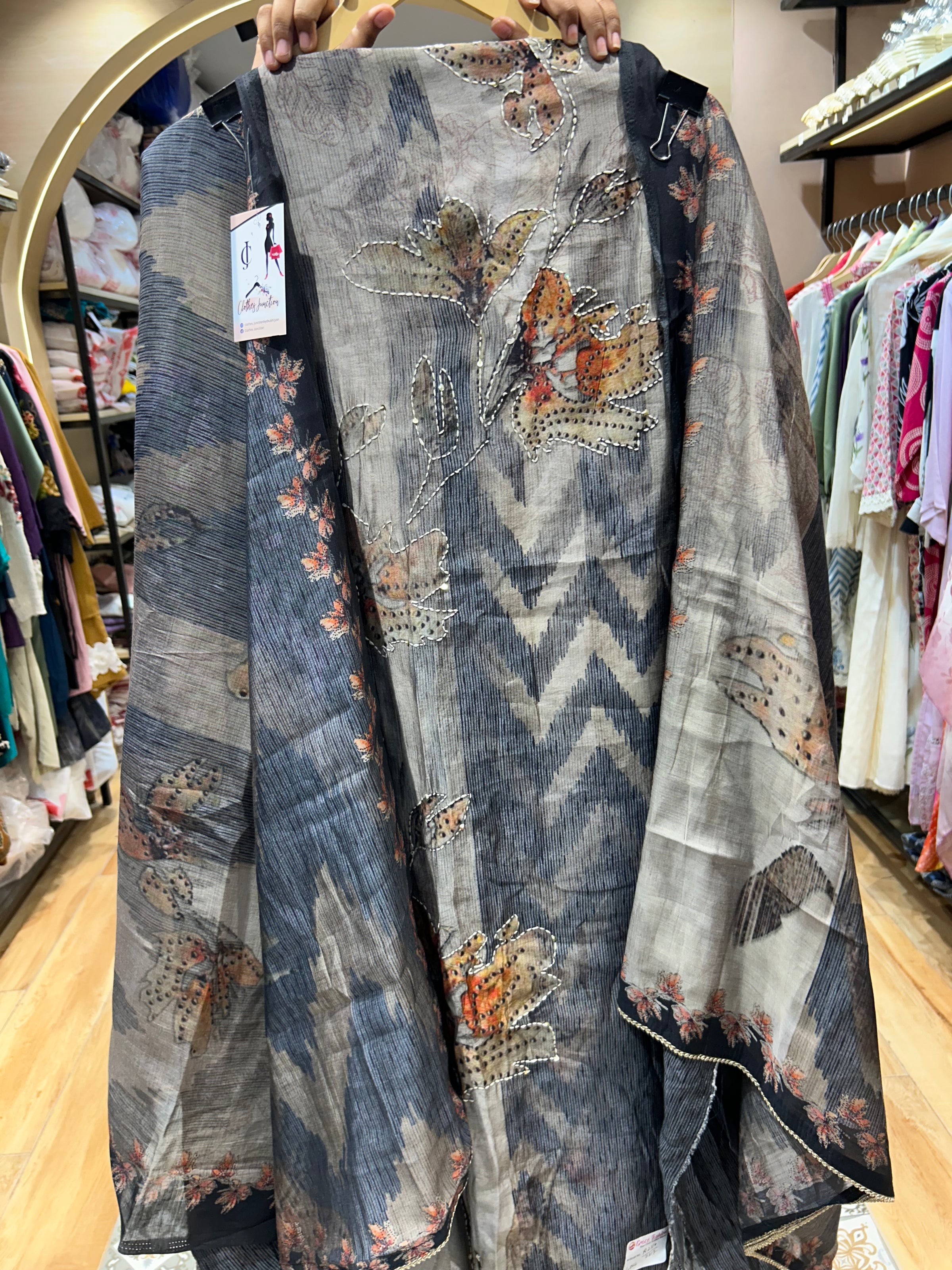 Give your Everyday look a dreamy update with this beautiful fabric. Team these with heels or flats and shoulder bag for a look we're loving. Handwork on kurta and dupatta