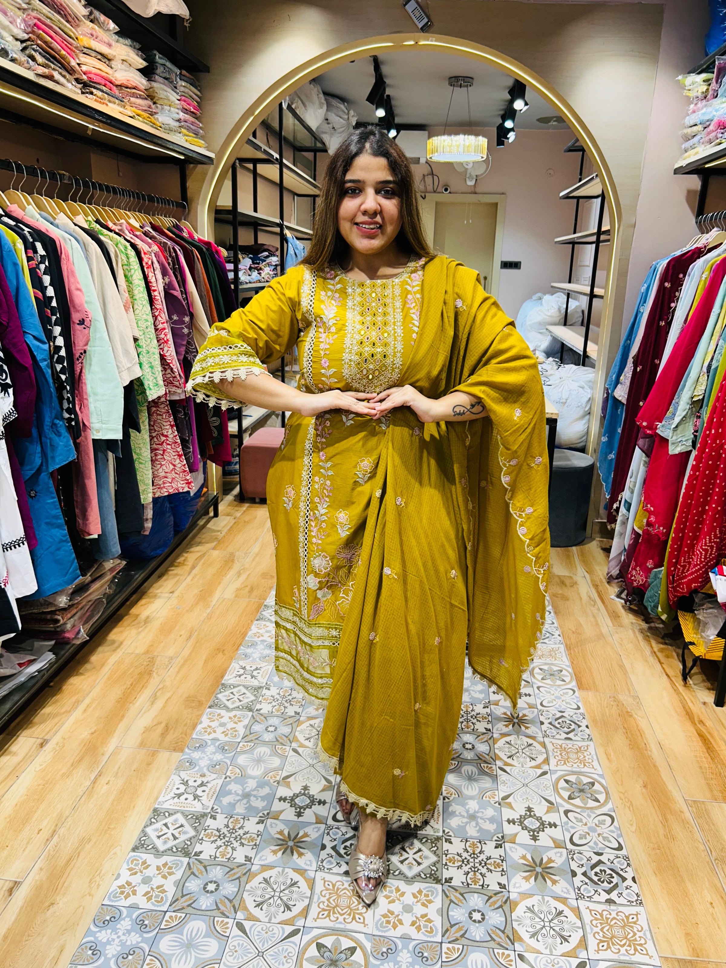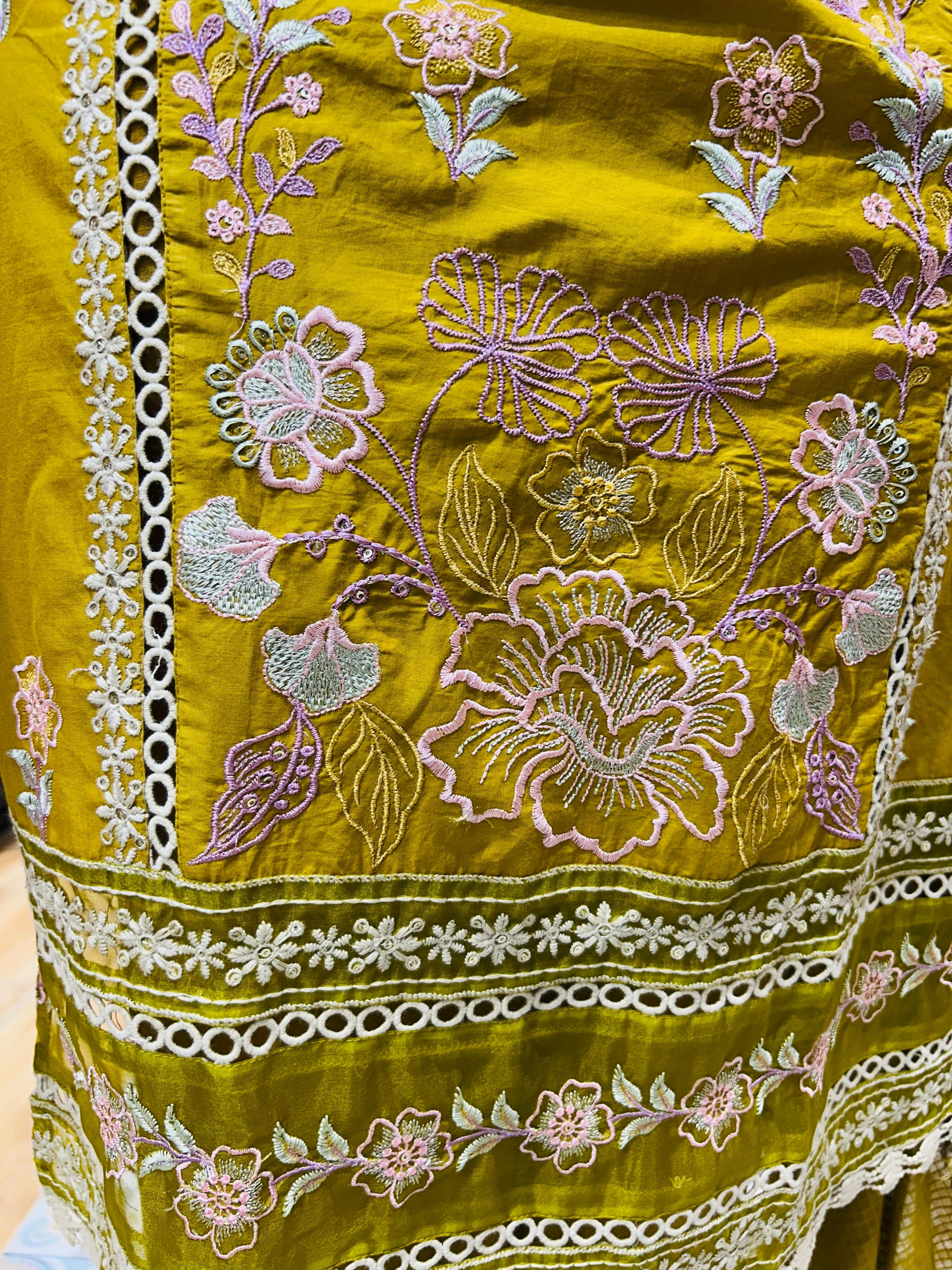 EMBROIDERY:- Intricate all over shirt and neck hand work deatiling, created a delicate raised texture.