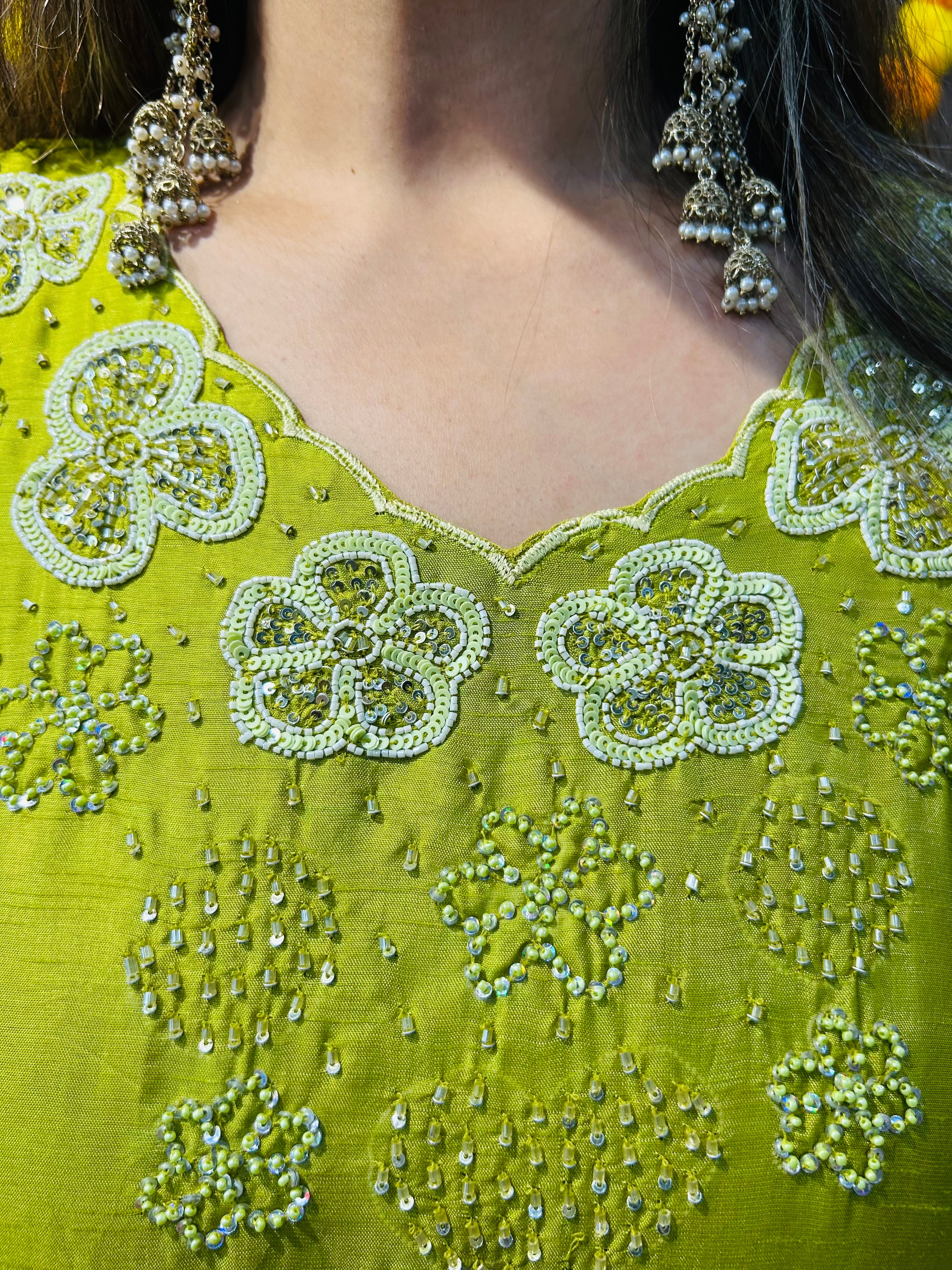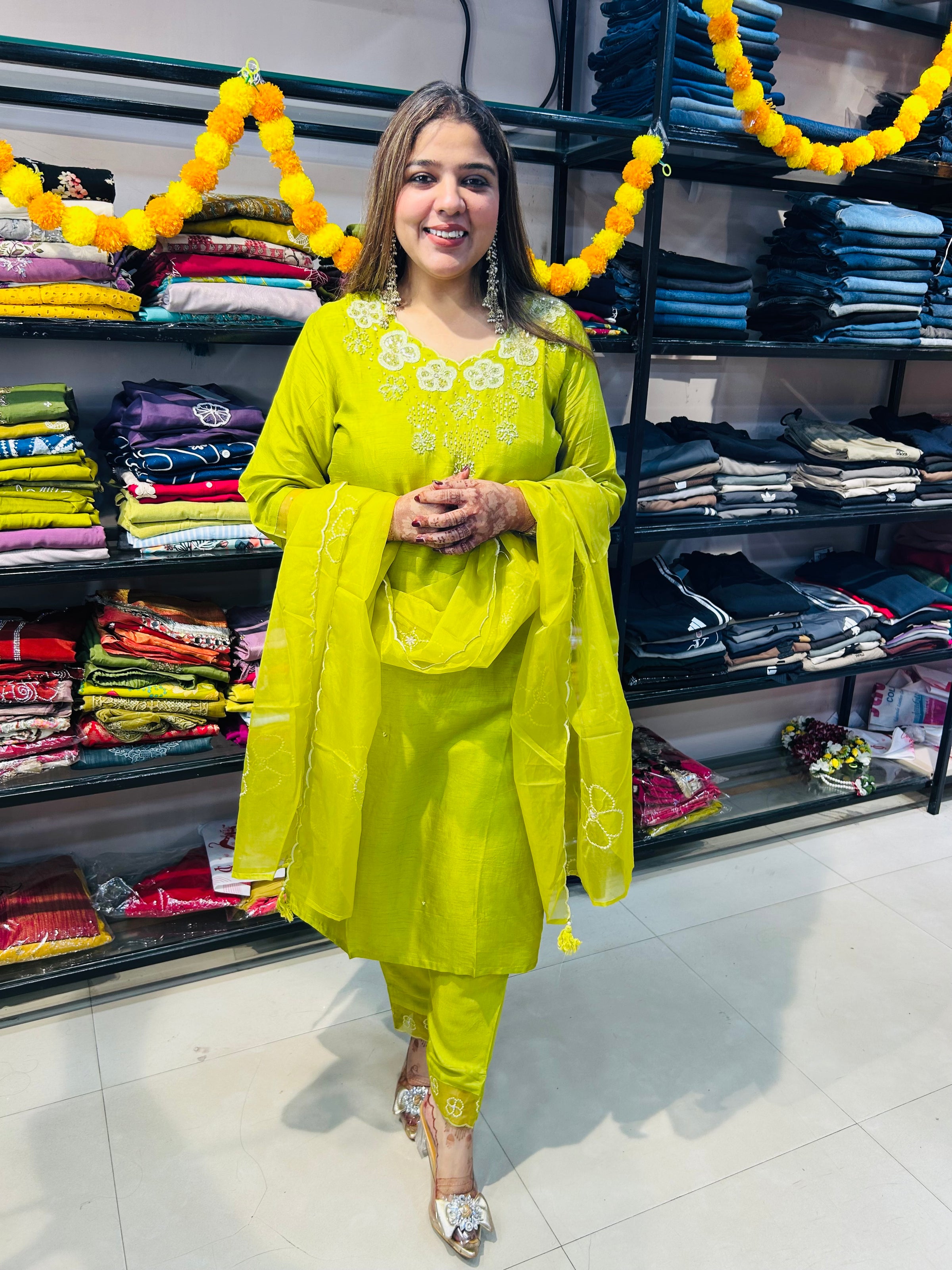 Beautiful unique design of SUIT with detailing all over neckline and bottom. The detailing and pattern will make a lit of heads on you and will also give you comfortable and classy look.