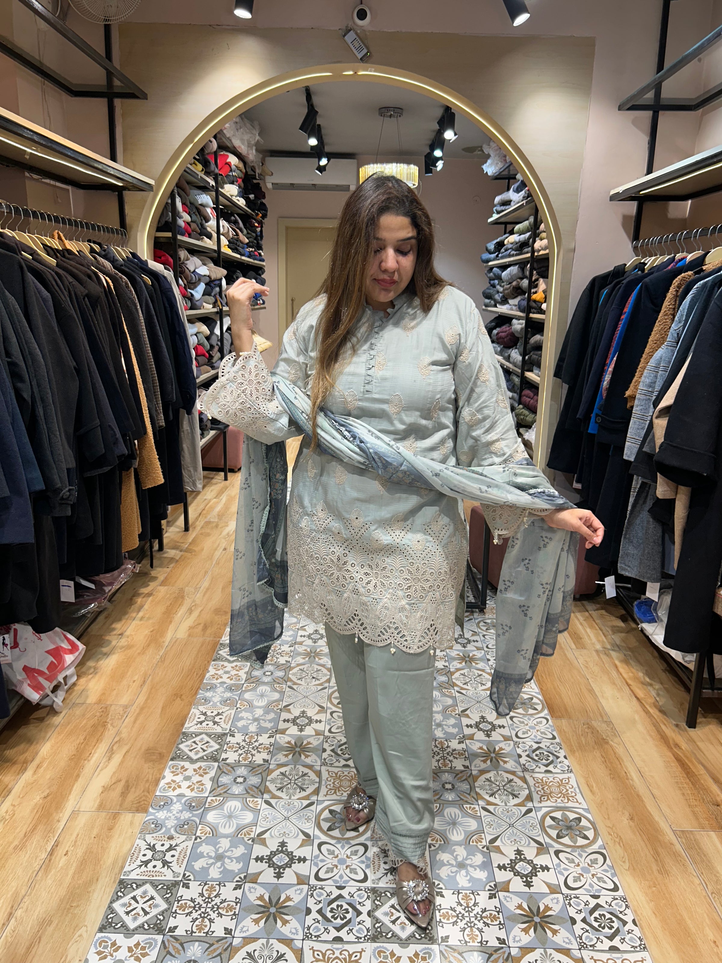 paired up with a duppata and neat finishing enchancing the luxe appeal
