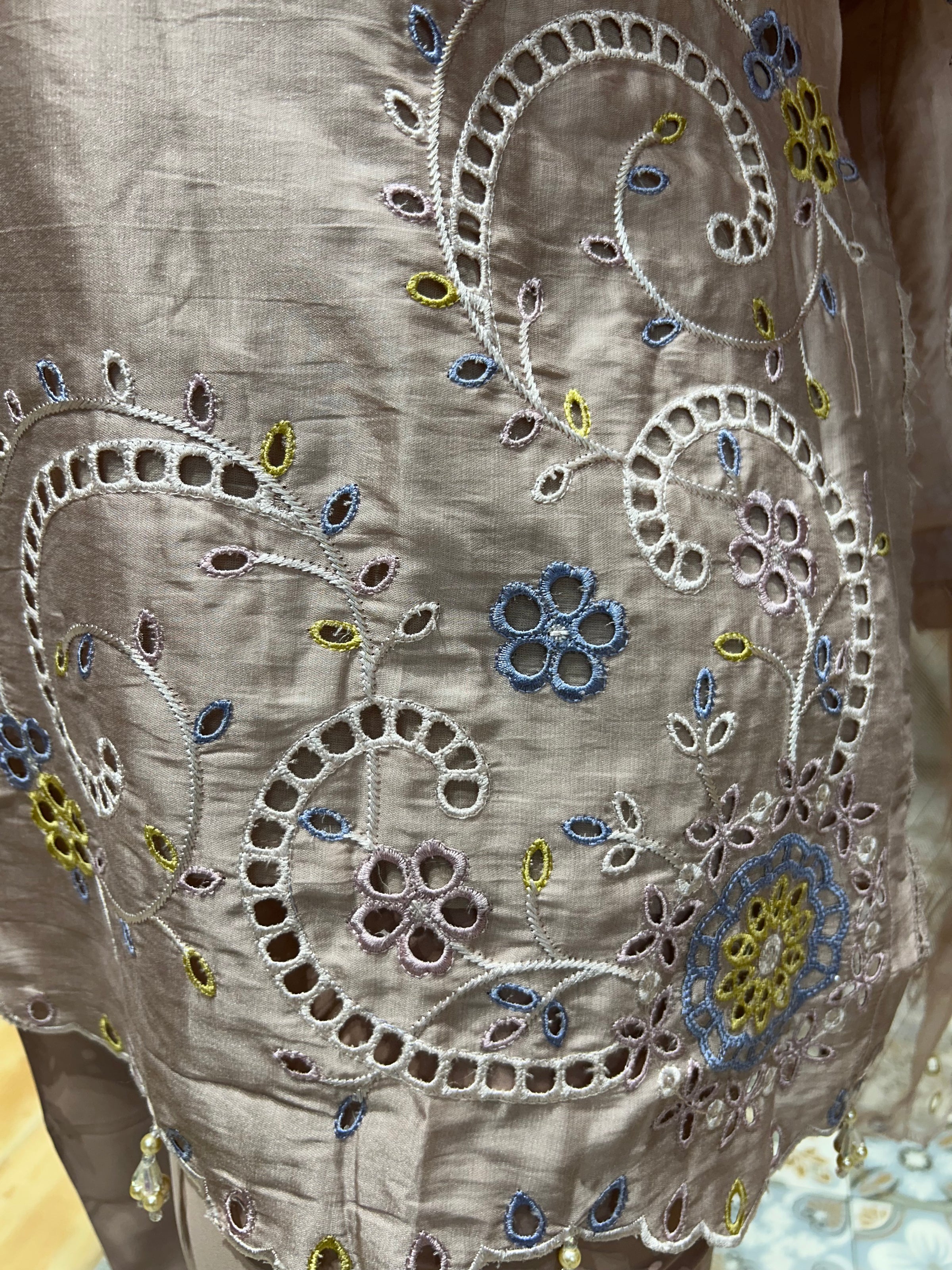 EMBROIDERY:- Intricate all over hakoba chicken shirt deatiling, created a delicate raised texture.