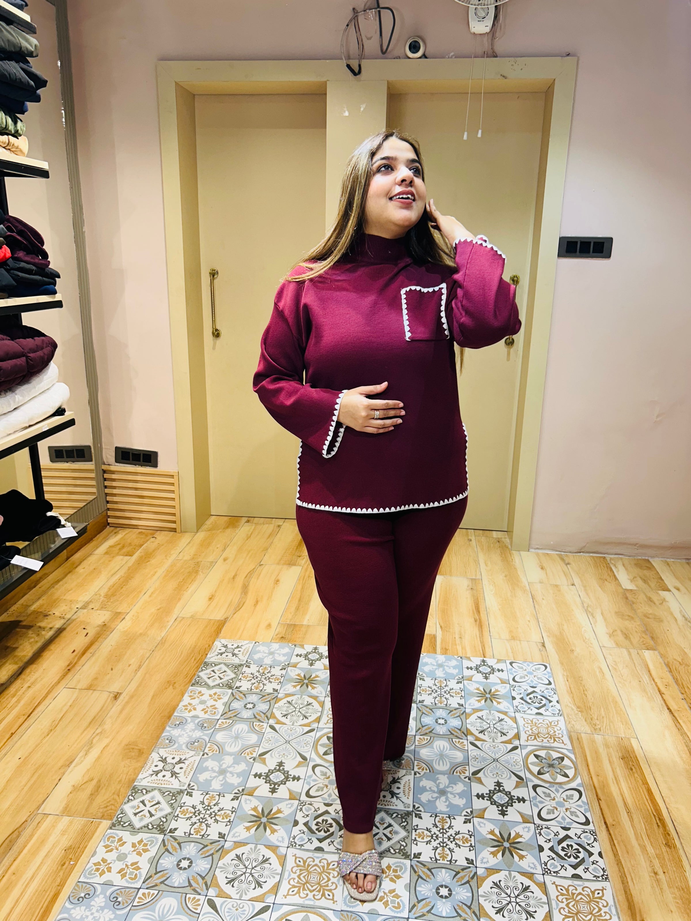 Beautiful unique design of Coordset with detailing all over neckline and bottoms. The detailing and pattern will make a lit of heads on you and will also give you comfortable and classy look.