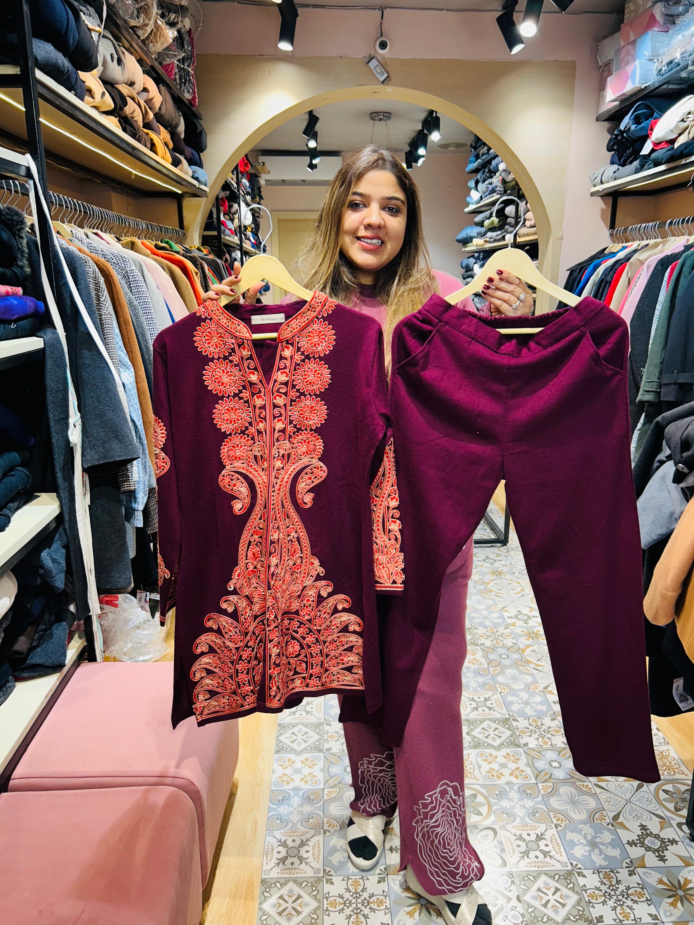 ETSK Beautiful unique design of COORDSET with detailing all over neckline and bottoms. The detailing and pattern will make a lit of heads on you and will also give you comfortable and classy look.
