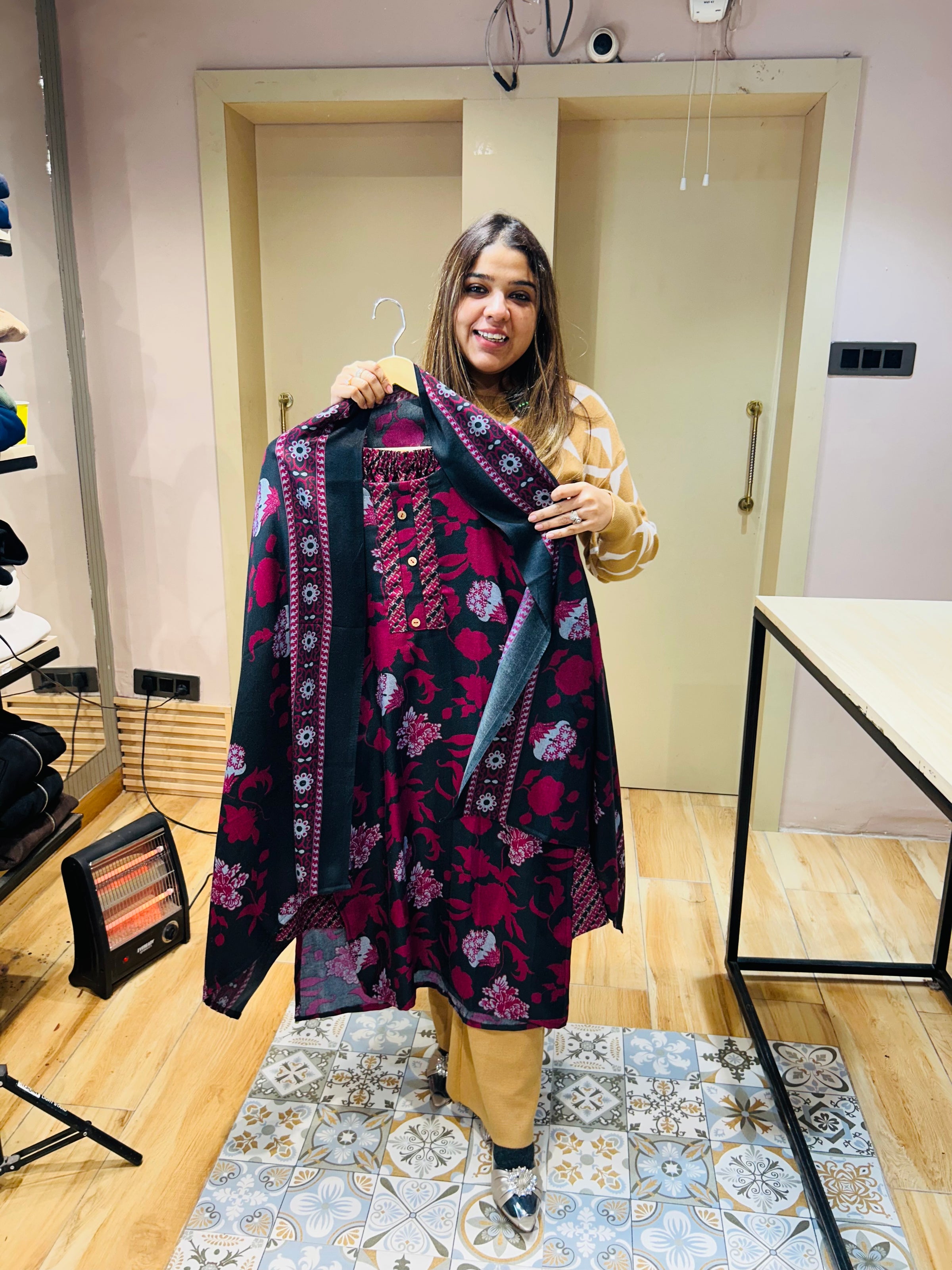 “YAMYA”- PASCHMINA STITCHED THREE PIECE SET