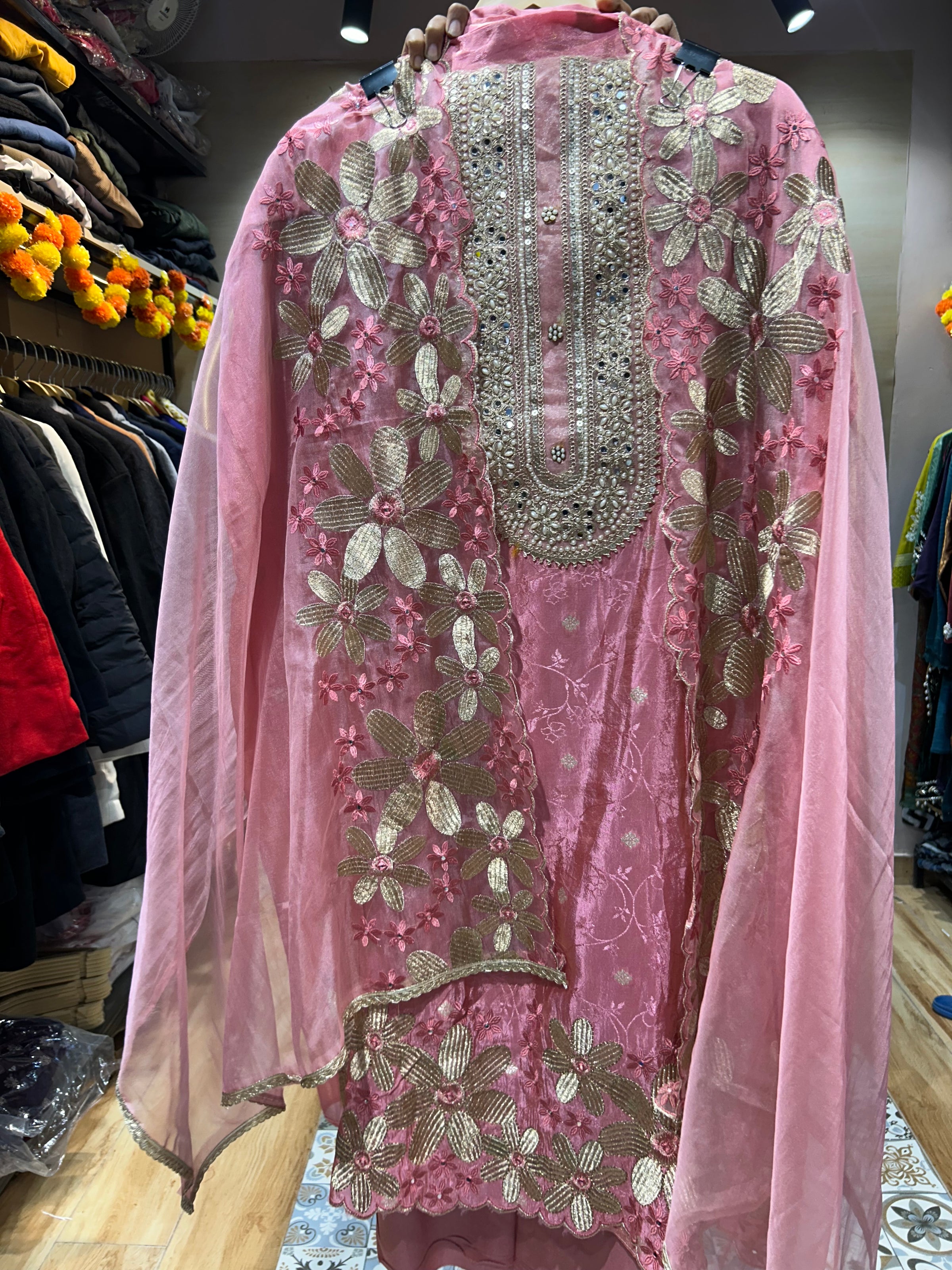 Give your Everyday look a dreamy update with this beautiful fabric. Team these with heels or flats and shoulder bag for a look we're loving. Handwork on kurta and dupatta